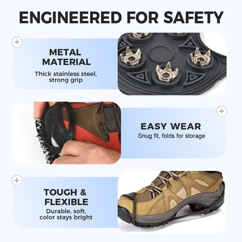 FIVE-STUD TRACTION – Mit fünf strategisch platzierten Stahlstollen erzielen Sie hervorragende Griffigkeit auf Eis und Schnee. Dieses Design verbessert Ihre Stabilität erheblich und verringert die Gefahr von Ausrutschern und Stürzen bei Spaziergängen im Winter.