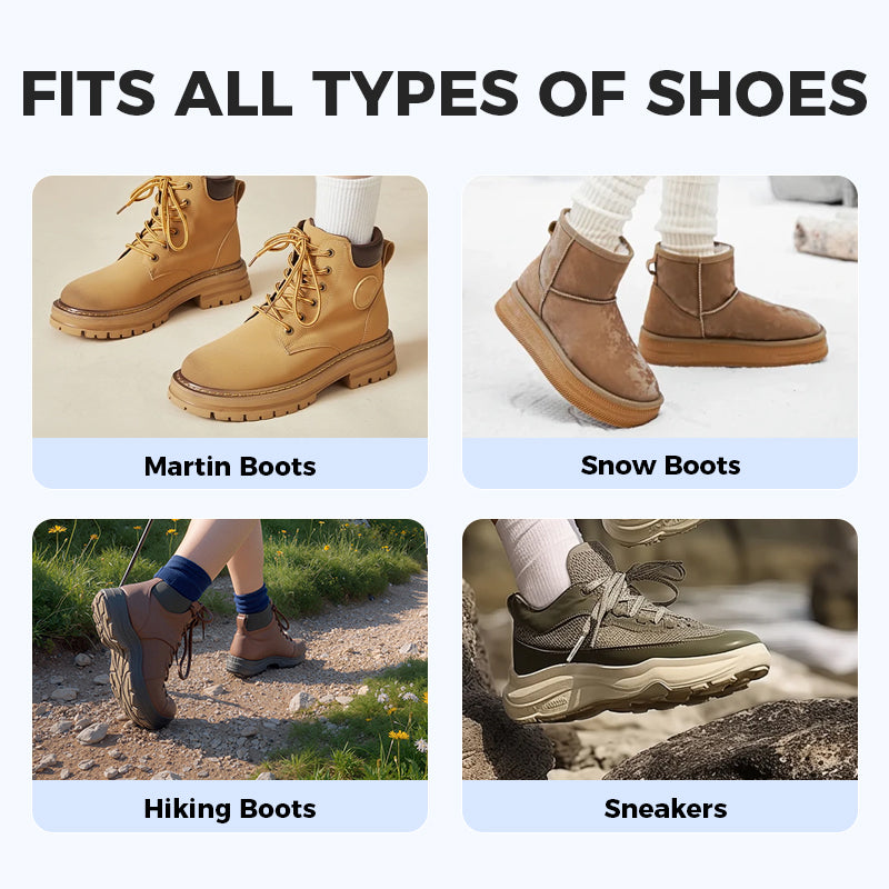 FLEXIBLER GUMMIRAHM – Diese Stollen bestehen aus hochelastischem Gummi und lassen sich leicht über die meisten Schuhtypen und -größen ziehen. Dies gewährleistet einen sicheren, festen Sitz für eine Vielzahl von Freizeit- und Outdoor-Schuhen.