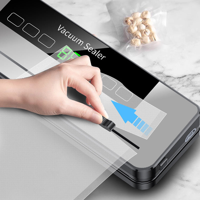 INTEGRIERTER SCHNEIDER: Ausgestattet mit einem integrierten Schiebeschnitzer ermöglicht Ihnen dieses Vakuumiergerät die einfache Herstellung passender Vakuumbeutel. So benötigen Sie keine Schere mehr und erhalten eine perfekte Passform für alle Ihre Versiegelungsanforderungen, was Ihren Prozess der Lebensmittelaufbewahrung optimiert.