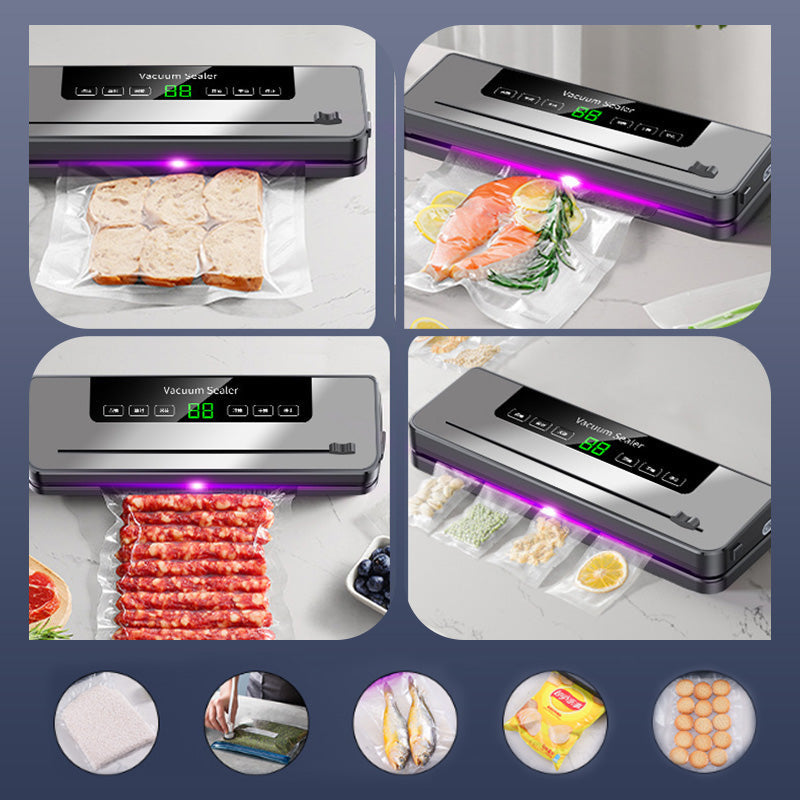 LEISTUNGSSTARKE VAKUUMVERSCHLUSSFUNKTION: Erzielen Sie perfekte Verschlüsse mit einer um 30 cm verlängerten Verschlussleiste und fortschrittlicher Saugtechnologie. Das Gerät entfernt effektiv Luft aus Beuteln, reduziert Verderb und bewahrt die Qualität der Lebensmittel, wodurch es sich ideal für eine Vielzahl von Lebensmitteln eignet.