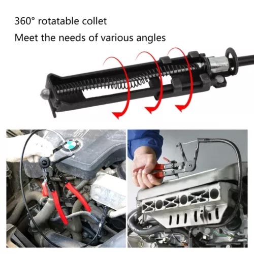 Mit dieser flexiblen Schlauchschellenzange können Sie Ihre Arbeitsabläufe erheblich verbessern und mühelos schwer zugängliche Klemmen entfernen oder installieren. Ob als professioneller Mechaniker oder als privater Autobesitzer – dieses Werkzeug bietet präzise und effiziente Lösungen, um verschiedenste Reparaturaufgaben an Fahrzeugleitungen und -klemmen zu bewältigen.