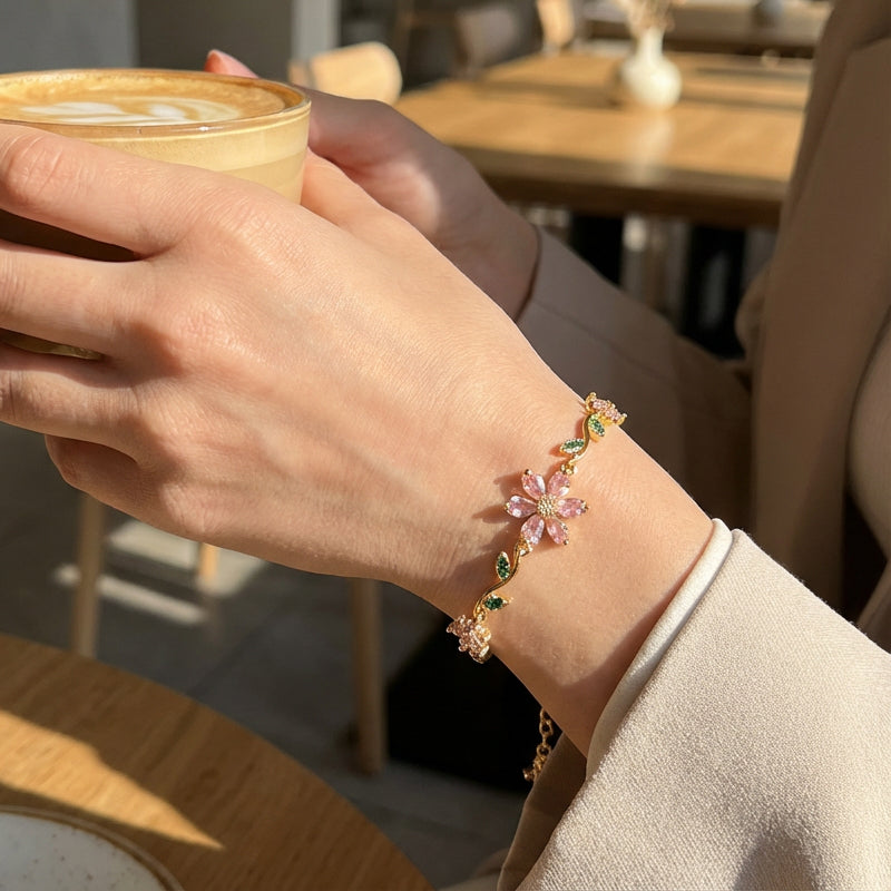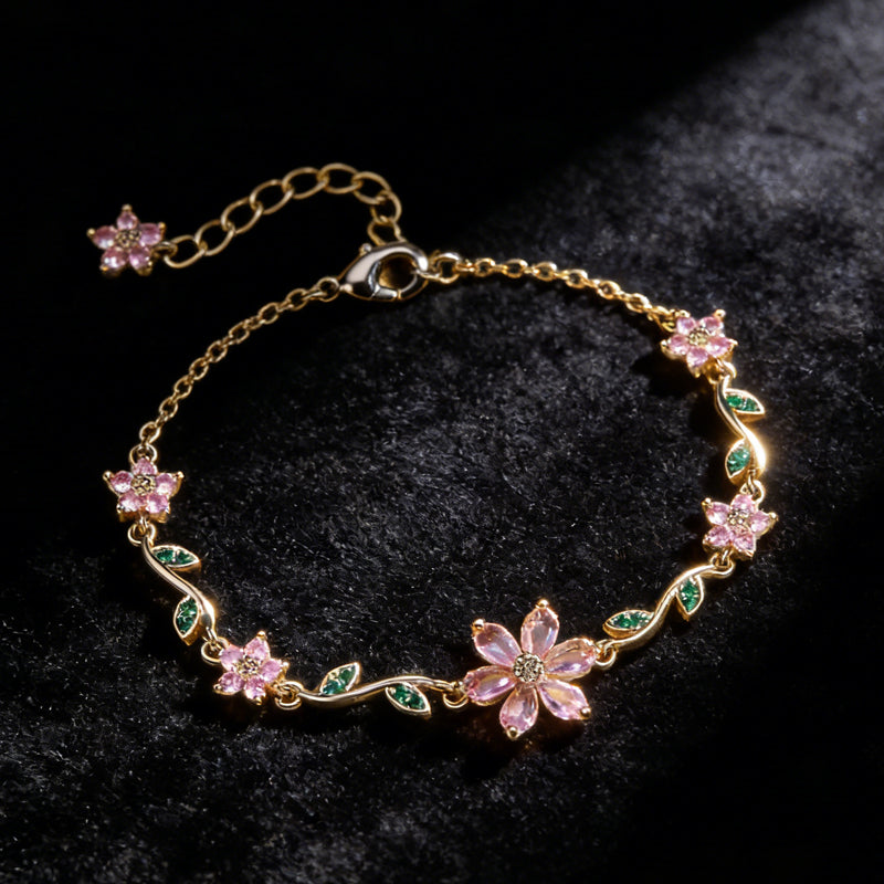 Lieferumfang: 1 * Damen-Armband mit Kirschblüten-Strasssteinen