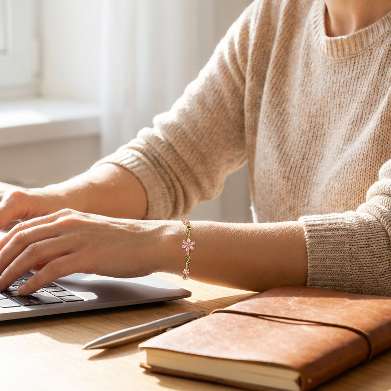 ELEGANTES RINDEN- UND BLUMENDESIGN: Verschönern Sie Ihr Handgelenk mit diesem von der Natur inspirierten Schmuckstück. Das zarte Ranken- und Kirschblütenmotiv verleiht Ihrem Look eine feminine Eleganz und wertet sowohl Ihren Alltagslook als auch formelle Outfits mühelos auf.