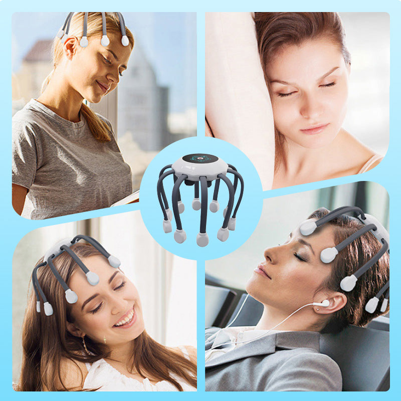 FORTSCHRITTLICHE MULTI-POINT-MASSAGETECHNOLOGIE – Mit 14 unabhängigen Massageknotenpunkten mit Punktmatrix und gitterartiger 360°-Verteilung sorgt dieses Massagegerät für eine präzise Stimulation, die den gesamten Kopf abdeckt. Sein kreatives Design ahmt einen Oktopus nach und sorgt dafür, dass jeder Bereich der Kopfhaut erreicht wird, um eine unvergleichliche Entspannung und Spannungslinderung zu erzielen.