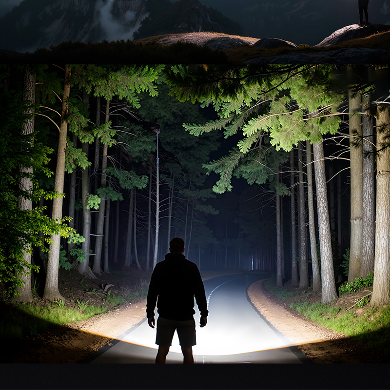 LEISTUNGSSTARKE DOPPELBELEUCHTUNG – Erleben Sie überragende Helligkeit mit einem 1300-Lumen-Hauptstrahler für die Fernsicht und einem 700-Lumen-Seitenflutlicht für eine breite, gleichmäßige Flächenausleuchtung. Passt sich mühelos jeder Situation an, von konzentrierten Aufgaben bis zum Aufbau eines Campingplatzes.