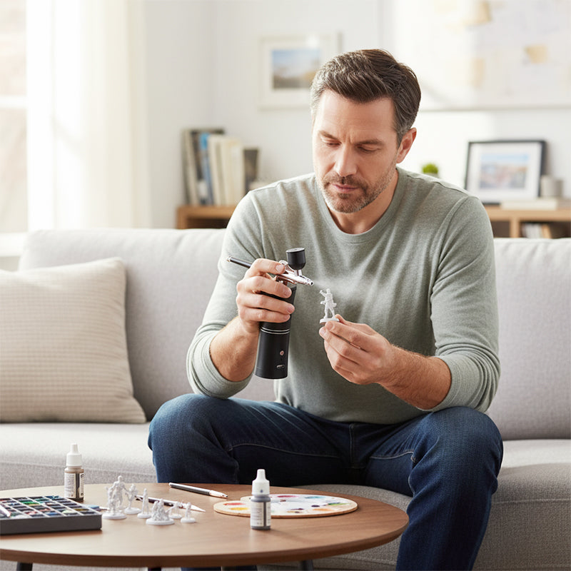EINFACH ZU REINIGEN UND ZU WARTEN – Das einfache, abnehmbare Design und die mitgelieferten Reinigungsbürsten machen die Reinigung nach dem Projekt schnell und mühelos und helfen Ihnen, Ihre Airbrush in einem optimalen Zustand für einen langfristigen, zuverlässigen Einsatz zu halten.
