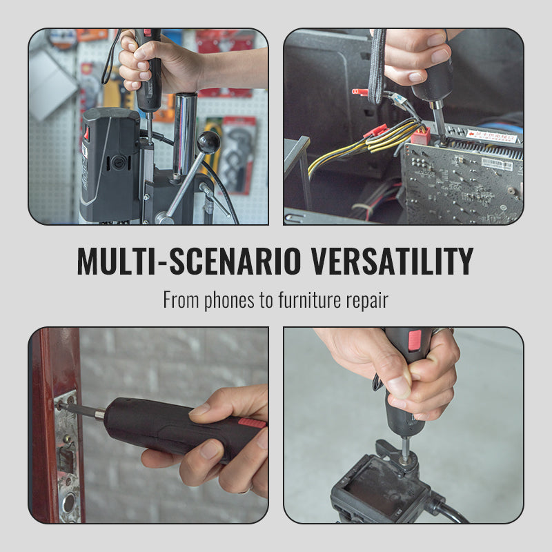 VIELSEITIG FÜR VIELFÄLTIGE ANWENDUNGEN: Perfekt für eine Vielzahl von Anwendungen, vom Zusammenbau von Möbeln und der Installation von Türschlössern bis hin zur Reparatur von Smartphones, Laptops und Automobilkomponenten. Funktioniert sowohl als Präzisionsschraubendreher als auch als Minibohrer und ist damit ein unverzichtbares Werkzeug für Heimwerker, Techniker und Hausbesitzer.