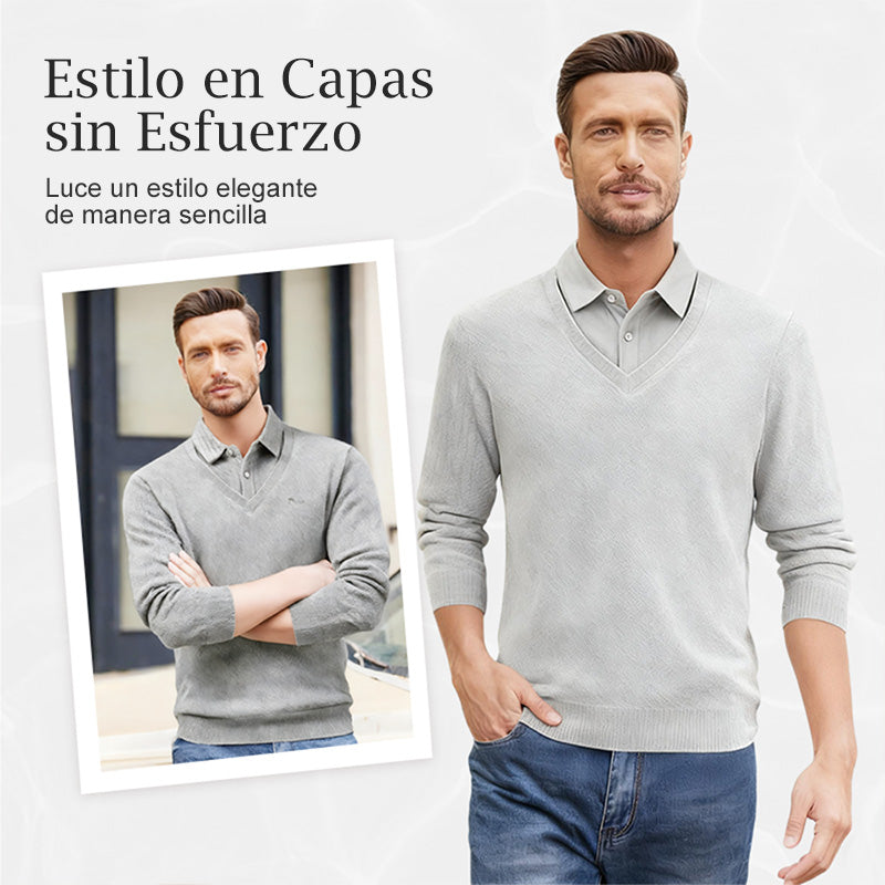 【💥Jahresendverkauf💥】Gefütterter Pullover für Herren mit Zweiteiler-Effekt