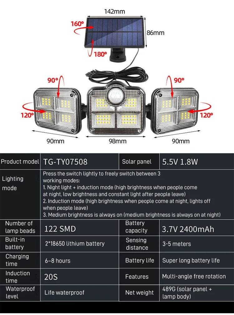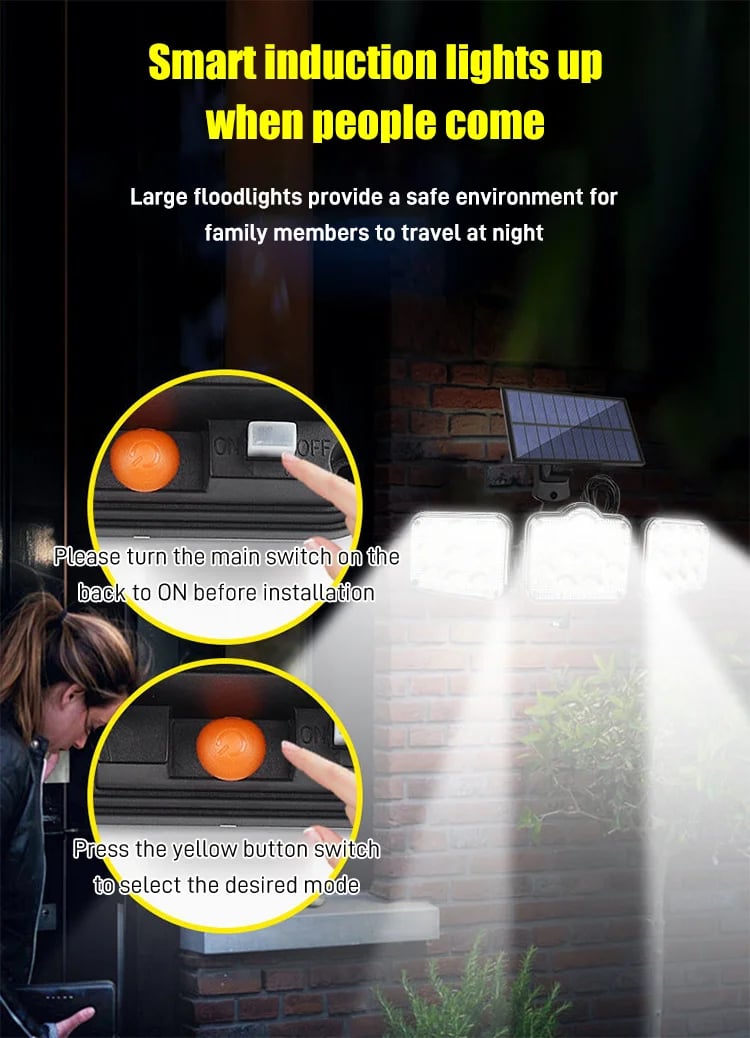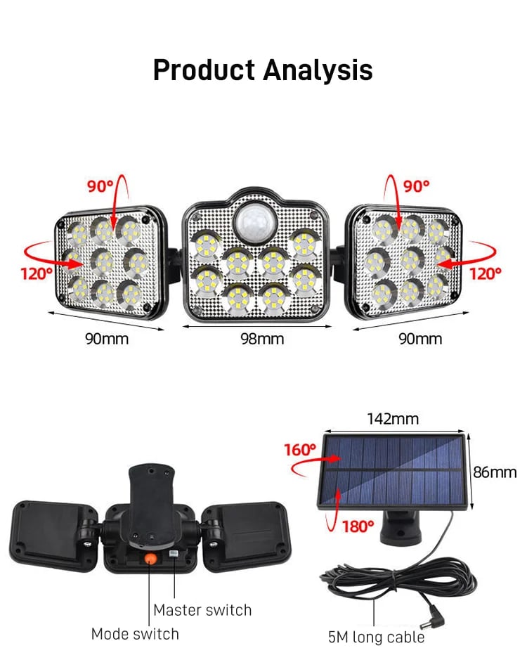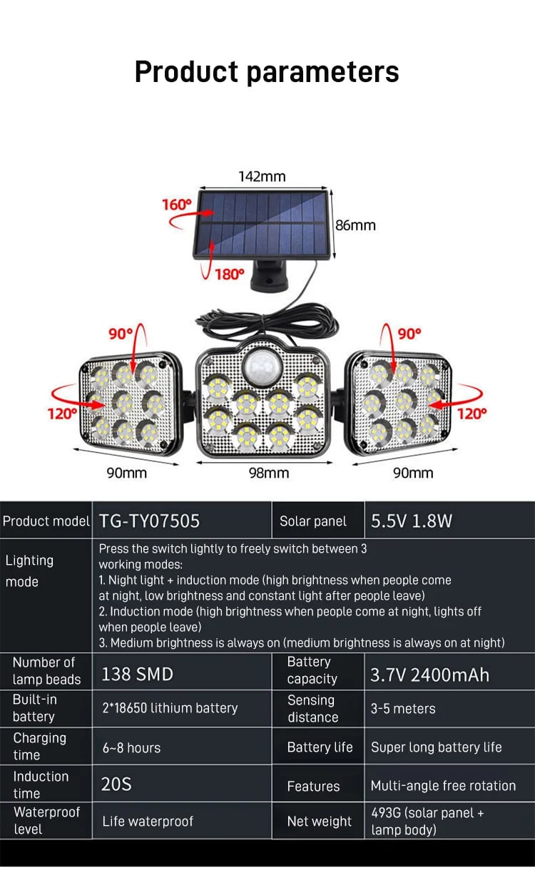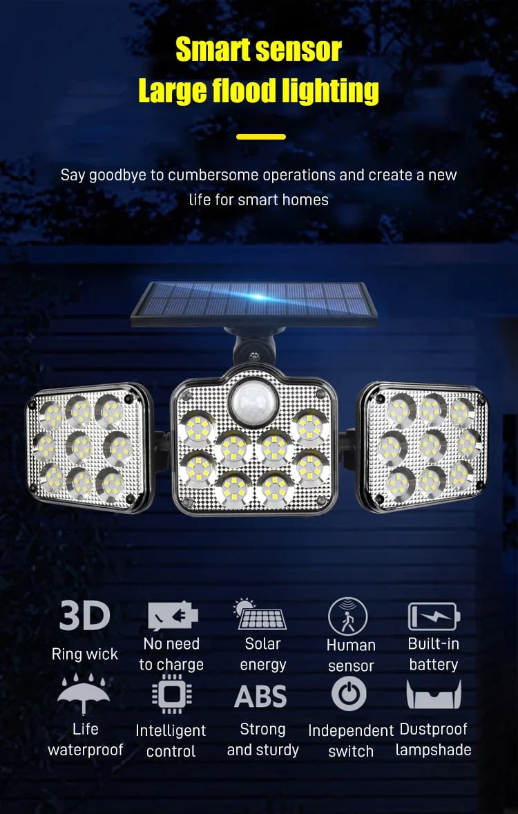 🎁Heißer Verkauf 49 % Rabatt🔥 Solar-Außenleuchten 138 LED-Sicherheitsleuchten, 3 dimmbare Strahler mit 3 Modi, IP65 wasserdicht