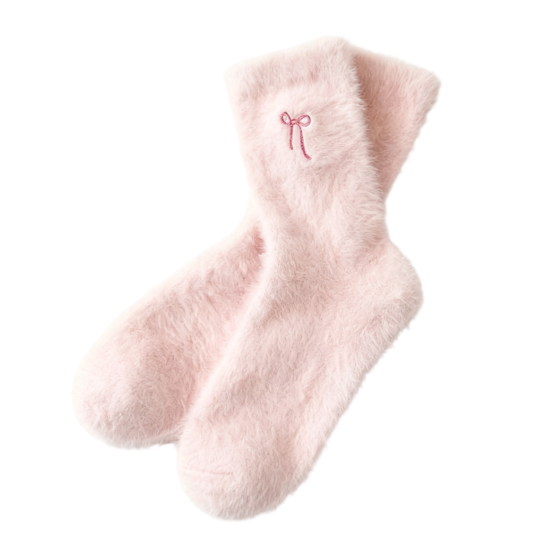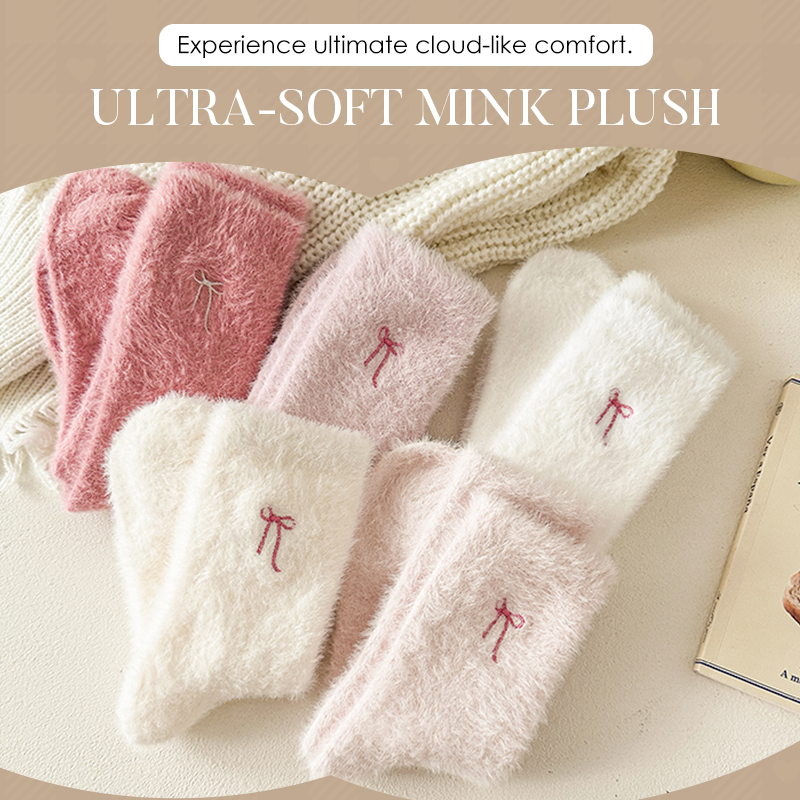 Plüschige Mink-Socken für Damen mit Schleifenstickerei